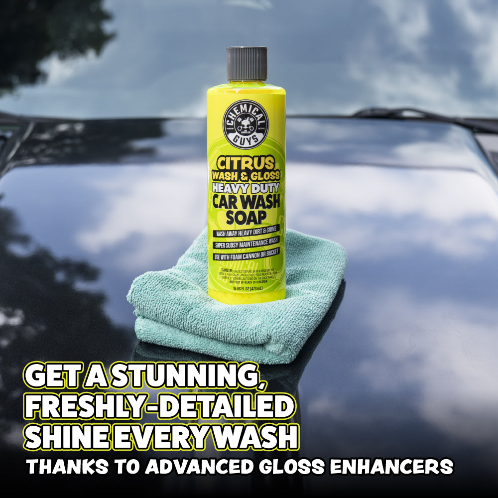 Citrus Wash & Gloss is a powerful hyper-concentrated car shampoo and gloss enhancer formulated to bring out a vibrant shine on all paint colors. Make any vehicle look just waxed and detailed!