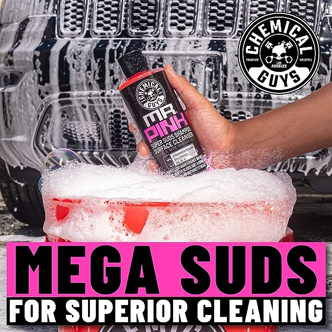 The Mr. Pink Foam Party Car Wash Deluxe Kit comes loaded with everything needed to give your car a gentle bucket wash with billions of soft. foamy bubbles. plus essential detailing products to keep your exterior surfaces fresh. clean. and protected between washes.