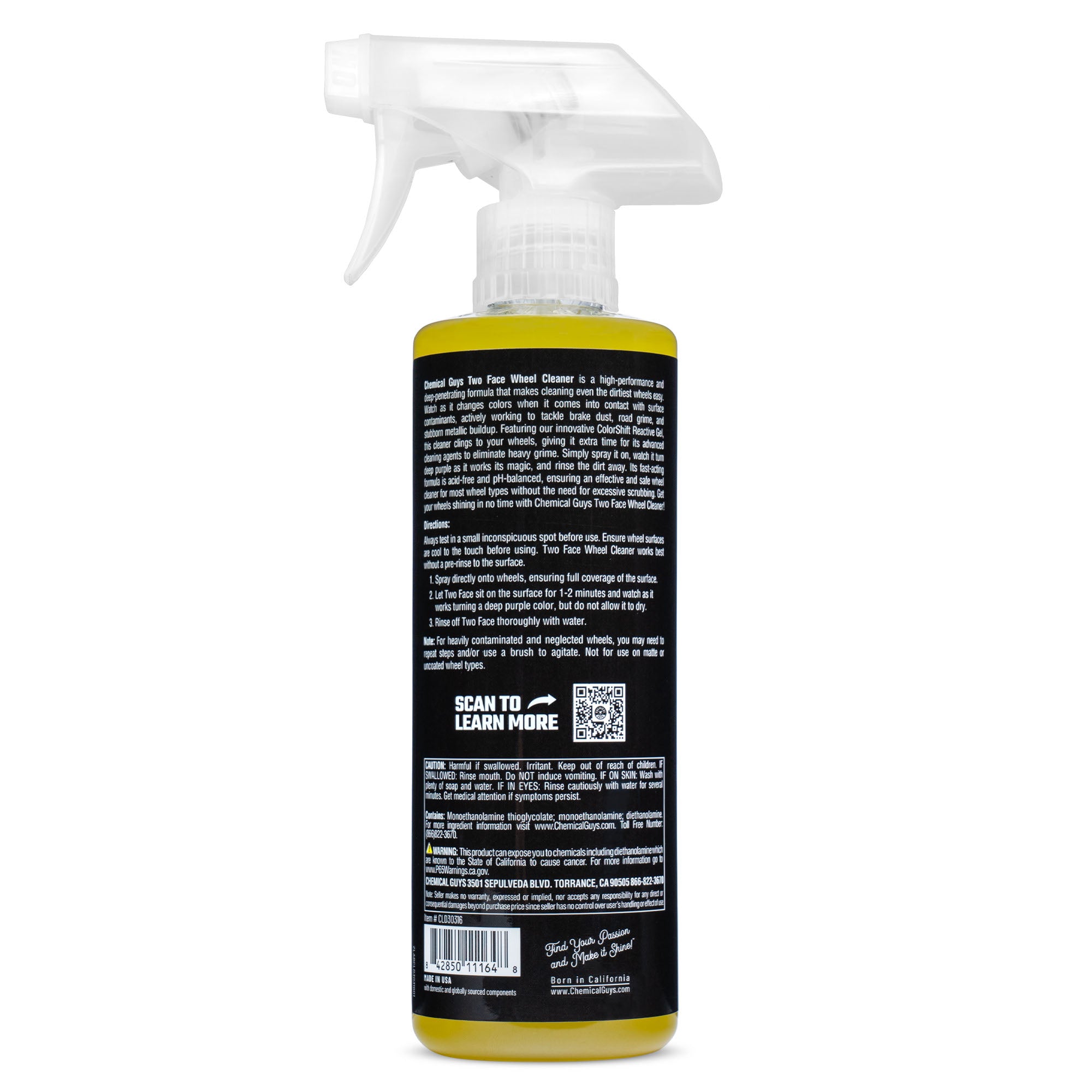 Say goodbye to hard scrubbing with Two Face Color Changing Wheel Cleaner. The easy-to-use gel formula changes colors as it works. clinging to wheels and using powerful agents to eliminate dirt. brake dust. and stubborn metallic buildup. Simply spray. wait for the color change. and rinse ?C no scrubbing required.